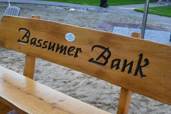 Das Naturbad hat jetzt eine Bassumer Bank. Der Bürger-Block e.V. stiftete sie mit maßgeblicher finanzieller Unterstützung des Mitglieds Reinhard Kirchner. Bei der Suche nach einem geeigneten Platz waren auch die beiden Fachangestellten des Bäderbetriebs und Mitglieder des Vereins Bassumer Bäder e.V. anwesend.