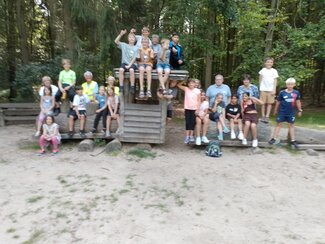 Zwanzig junge Fahrradfahrer und -fahrerinnen starteten am Donnerstag, dem 1. August 2024 bei Traumwetter um 14 Uhr vom Hallenbadparkplatz in Richtung Bramstedt zum bekannten und beliebten Waldspielplatz in der Westermark. Unterwegs durfte die Verschnaufpause mit Naschereien und Getränken nicht fehlen. Die Tour war für die Kids keine Herausforderung, wie den Betreuern von den Teilnehmern versichert wurde.Nach der Ankunft gab es zuerst eine Warnung und eine Aufklärung über mit E gekennzeichneten Eichen (Eichenprozessionsspinner)